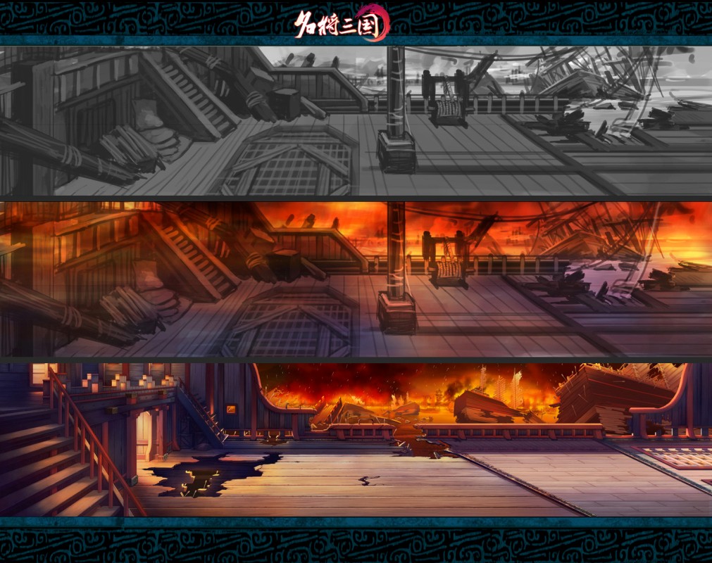 《名将三国》的场景拥有一种介于真实和卡通绘画之间的“怀旧游戏画面感”。画面之作采用多层场景、粒子处理效果,美术表现色彩逼真,更佳细腻。人物方面采用3D建模、2D渲染,使得人物在饱满充实的同时更显精致,更富有立体感。