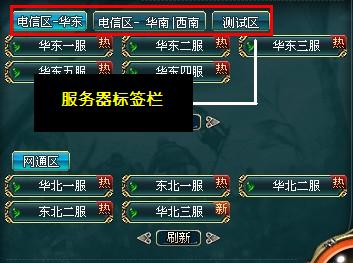 - 请各位电信区的玩家先点击希望进入的区组,然后双击您的游戏服务器名称进入游戏。
